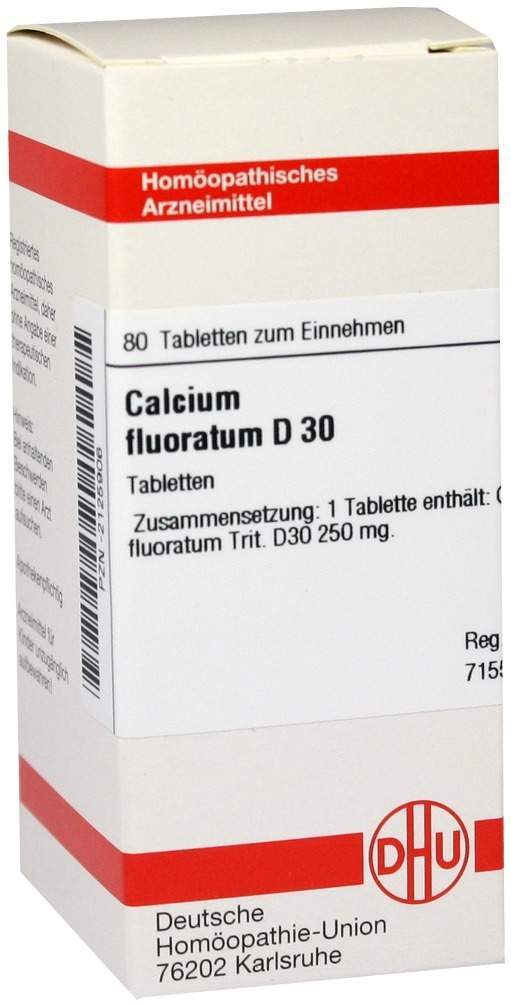 - Calcium Fluoratum D30 ist ein homöopathisches Arzneimittel, das traditionell zur Unterstützung des Bindegewebes, der Knochen und der Zähne eingesetzt wird.