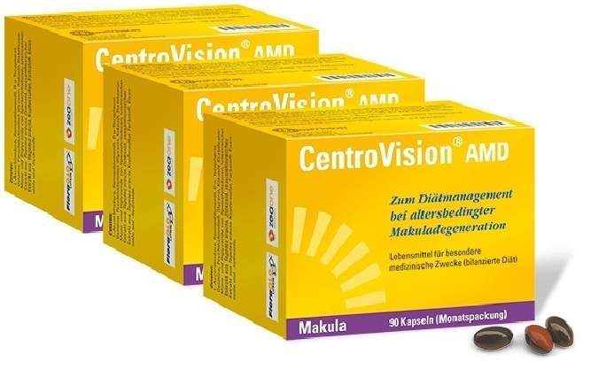 Nahrungsergänzungsmittel sind kein Ersatz für eine ausgewogene und abwechslungsreiche Ernährung und eine gesunde Lebensweise. Die angegebene empfohlene tägliche Verzehrmenge darf nicht überschritten werden. Außerhalb der Reichweite von kleinen Kindern aufbewahren. Bei bestehenden Erkrankungen oder der Einnahme von Medikamenten sollten Sie vor der Einnahme von CentroVision AMD Ihren Arzt oder Apotheker konsultieren.