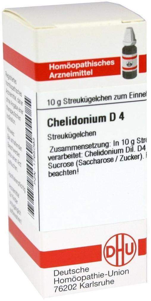 - Chelidonium D4 Globuli sind ein homöopathisches Arzneimittel, das traditionell zur Unterstützung der Leber- und Gallenfunktion eingesetzt wird. Sie enthalten den Wirkstoff Chelidonium majus (Schöllkraut) in potenzierter Form.