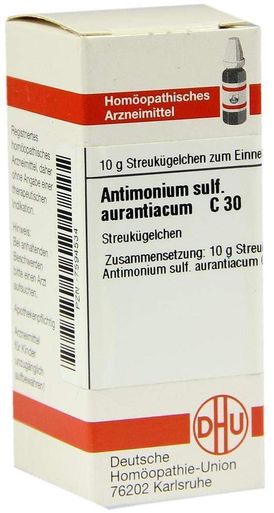 - Dhu Antimonium Sulfuricum Aurantiacum C30 Globuli sind in der Regel mehrere Jahre haltbar. Das genaue Verfallsdatum finden Sie auf der Packung.