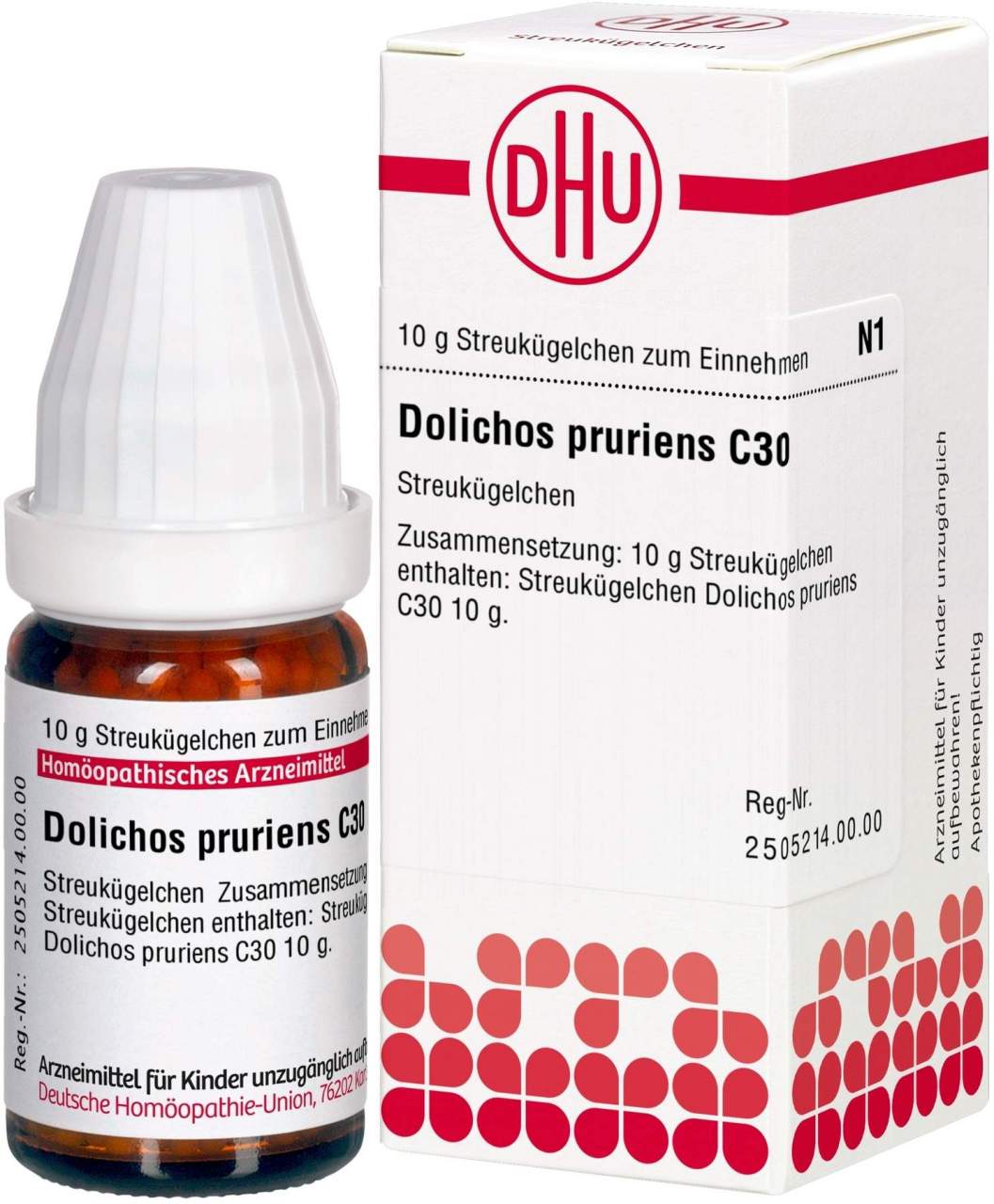 - Dolichos Pruriens C30 Globuli werden hauptsächlich bei Juckreiz und Hautbeschwerden eingesetzt. Ob das Mittel auch bei anderen Beschwerden hilfreich sein kann, sollte individuell mit einem Arzt oder Heilpraktiker besprochen werden.