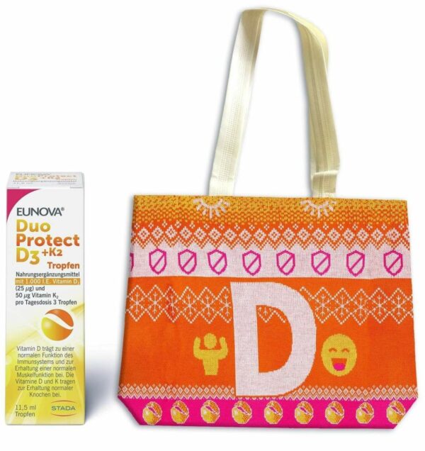 Sichern Sie sich jetzt Eunova DuoProtect D3+K2 Tropfen inklusive gratis Tasche!