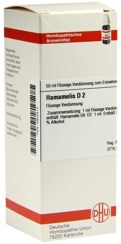Hamamelis D2 Dhu ist ein homöopathisches Arzneimittel, das traditionell zur unterstützenden Behandlung von Beschwerden wie Hämorrhoiden, Krampfadern, Venenschwäche, Blutergüssen, Hautirritationen und leichten Verbrennungen eingesetzt wird.