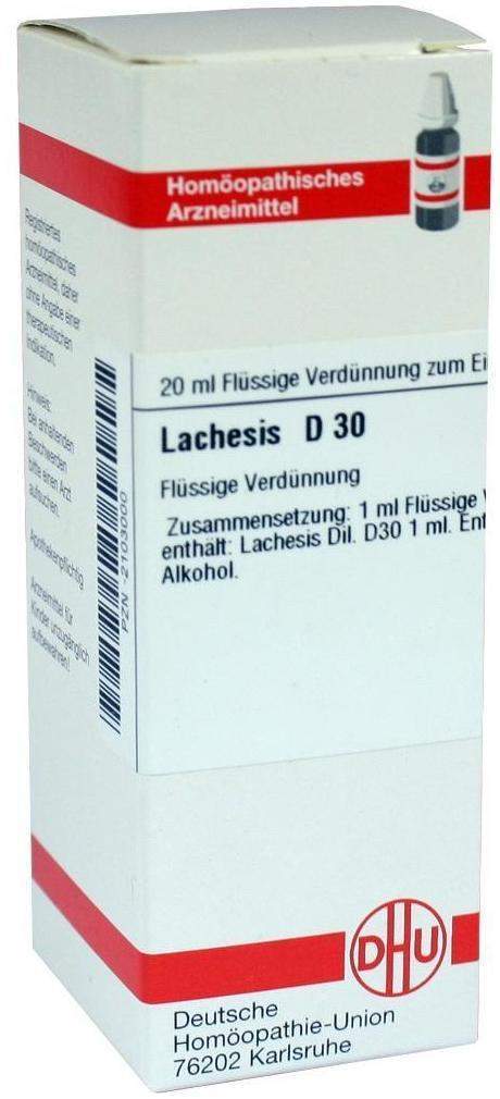 - Selbstbehandlung: Bei schweren oder anhaltenden Beschwerden sollten Sie einen Arzt aufsuchen, um die Ursache abklären zu lassen. Die Selbstbehandlung mit Lachesis D30 Dilution ersetzt nicht den Besuch beim Arzt.