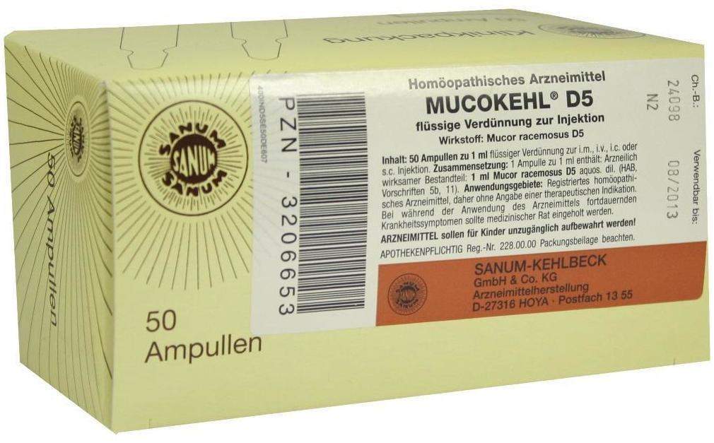 - Mucokehl D5 ist ein homöopathisches Arzneimittel, das aus dem Schimmelpilz Mucor racemosus gewonnen wird. Es wird traditionell zur Unterstützung des Immunsystems und zur Harmonisierung des inneren Gleichgewichts eingesetzt.