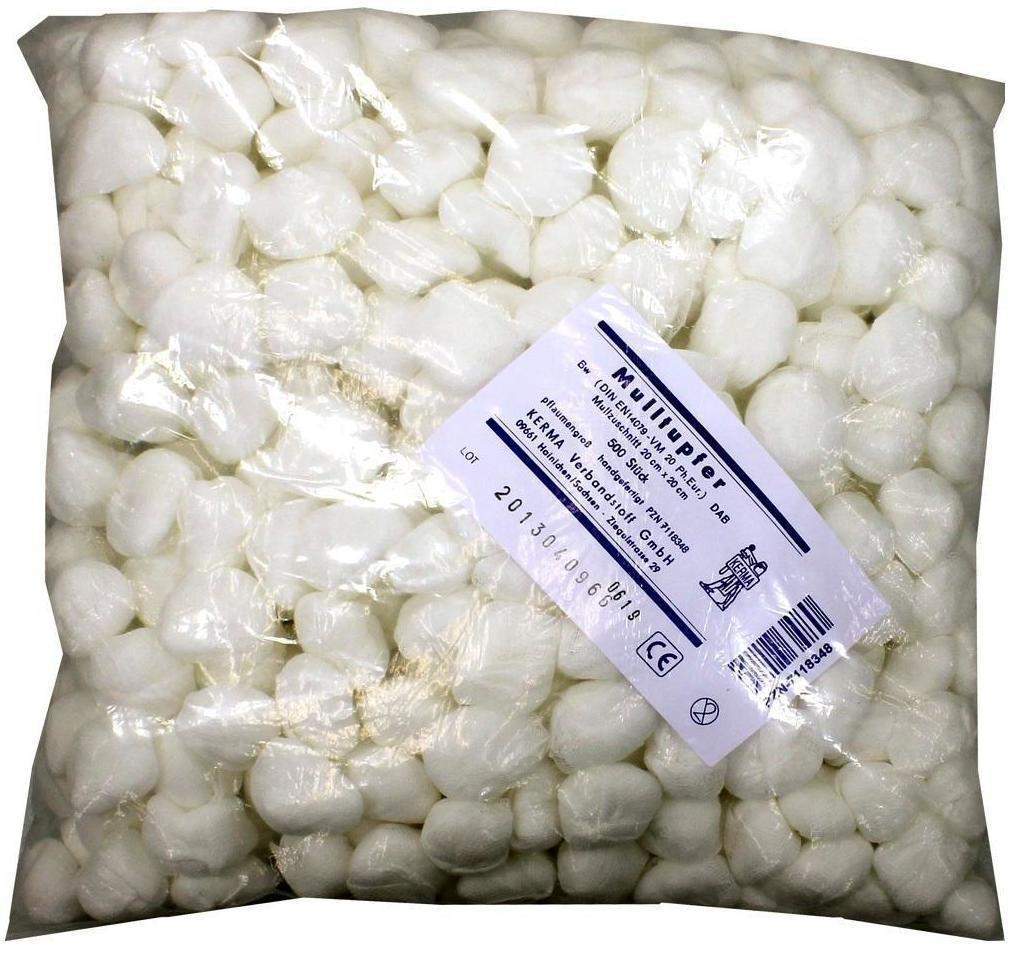 Die Mulltupfer haben ein Format von 20x20cm und sind in etwa Pflaumengroß.