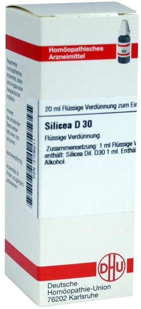Die Bezeichnung „D30“ gibt den Potenzierungsgrad des Mittels an. Das bedeutet, dass der ursprüngliche Wirkstoff (Kieselsäure) 30-mal im Verhältnis 1:10 verdünnt und verschüttelt (potenziert) wurde. Dieser Prozess soll die heilende Wirkung des Mittels verstärken.