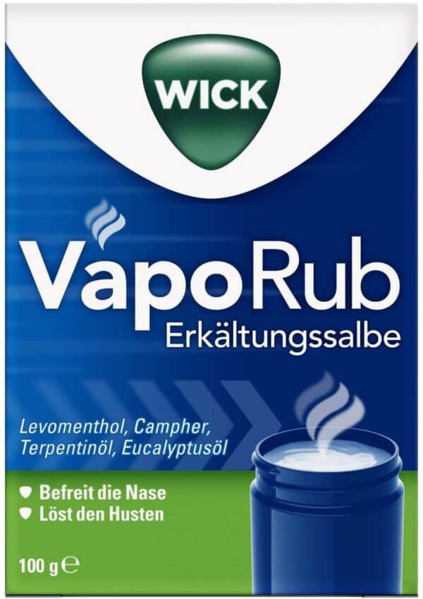 Fühlen Sie sich von einer Erkältung ausgebremst? Verstopfte Nase, lästiger Husten und ein allgemeines Gefühl des Unwohlseins können den Alltag erheblich beeinträchtigen. Mit WICK VapoRub Erkältungssalbe können Sie auf eine bewährte und wohltuende Lösung zurückgreifen, um die Symptome Ihrer Erkältung auf natürliche Weise zu lindern. Seit Generationen vertrauen Menschen auf die kraftvollen Inhaltsstoffe und die befreiende Wirkung von WICK VapoRub. Erleben auch Sie, wie diese Erkältungssalbe Ihnen hilft, wieder freier durchzuatmen und sich wohler zu fühlen.